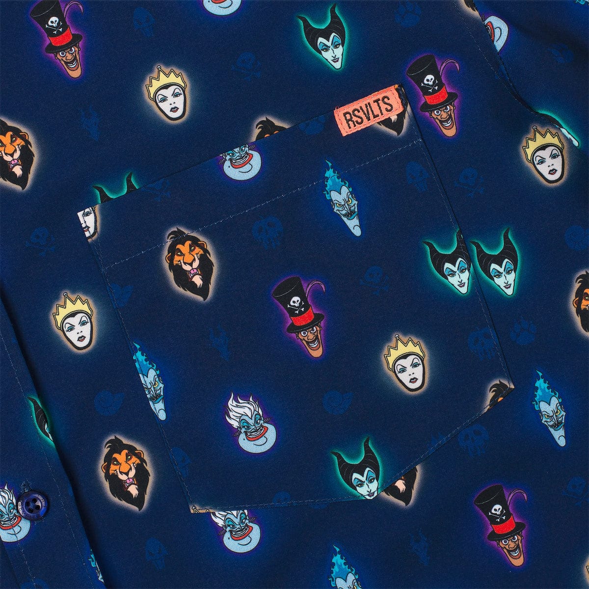 Go rogue with this KUNUFLEX™ featuring a team of some seriously classic animated baddies. It’s Disney’s Maleficent, Scar, Evil Queen, Ursula, Hades, and Dr. Facilier, all aglow with bad intentions. In the background, visible only to those brave enough to take a closer look, we’ve got some devious deets that make this a button down that’s worth the risk.