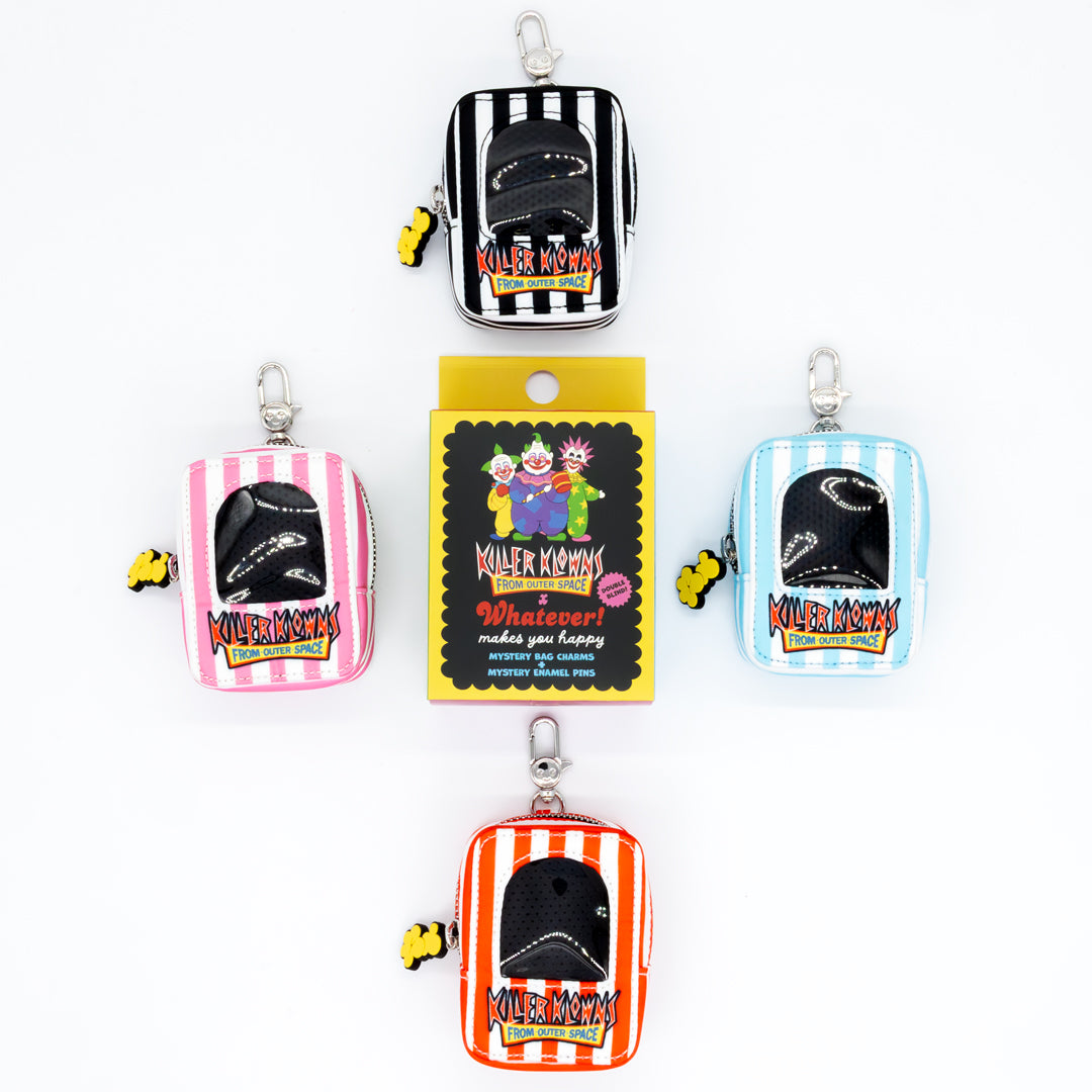 Twice the mystery, twice the mayhem! These Killer Klowns From Outer Space Mini Popcorn Ita Bag Charms are the ultimate collectible fright—because you’re not just opening one surprise… you’re opening two. First, tear into your blind box to reveal one of 4 creepy-cute mini popcorn bag charms.